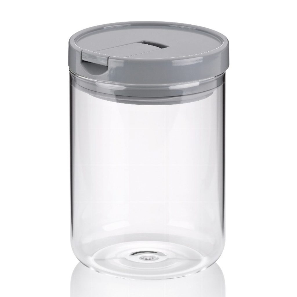 KELA Dóza ARIK skleněná šedá 0,9 l KL-12108 - skladovací dóza s praktickým dávkovacím víkem- skleněné tělo a víčko z plastu- maximálně těsnící díky silikonovému těsnění- dózu můžete celou otevřít odšroubováním víka, nebo použít zaklapávací otvor pro přímé dávkování- vhodná pro skladování potravin i jakýchkoliv dalších drobností- barva: šedá- rozměr: 15 x 10,5 cm- objem: 900 ml- v sérii ARIK je celkem 6 dóz ve třech velikostech a to v bílé a šedé barvě víček- značka: KELA
