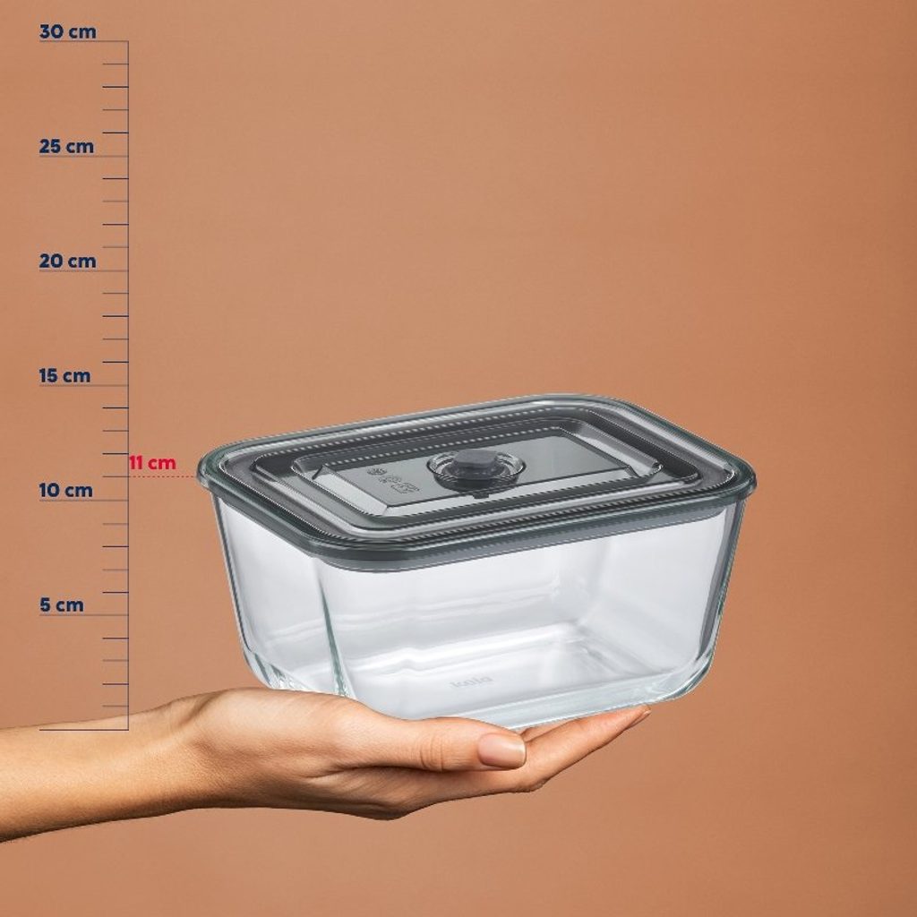Nádoba na potraviny z borosilikátového skla se systémem Push & Go.