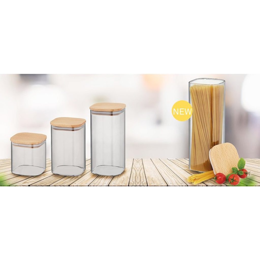 KELA Dóza skladovací sklo / dřevo NEA 1,1 l KL-10777 - hranatá skladovací dóza z borosilikátového skla- sklo je lehce tónované, což zajišťuje lepší ochranu před slunečním zářením- víčko z bukového dřeva- silikonové těsnění ve víku zajistí perfektní těsnost- skladované potraviny zůstanou díky tomu déle čerstvé- široké možnosti využití- rozměry: 10 x 10 x 16 cm- objem: 1,1 litru- v sérii NEA můžete zakoupit celkem 4 různě velké dózy.