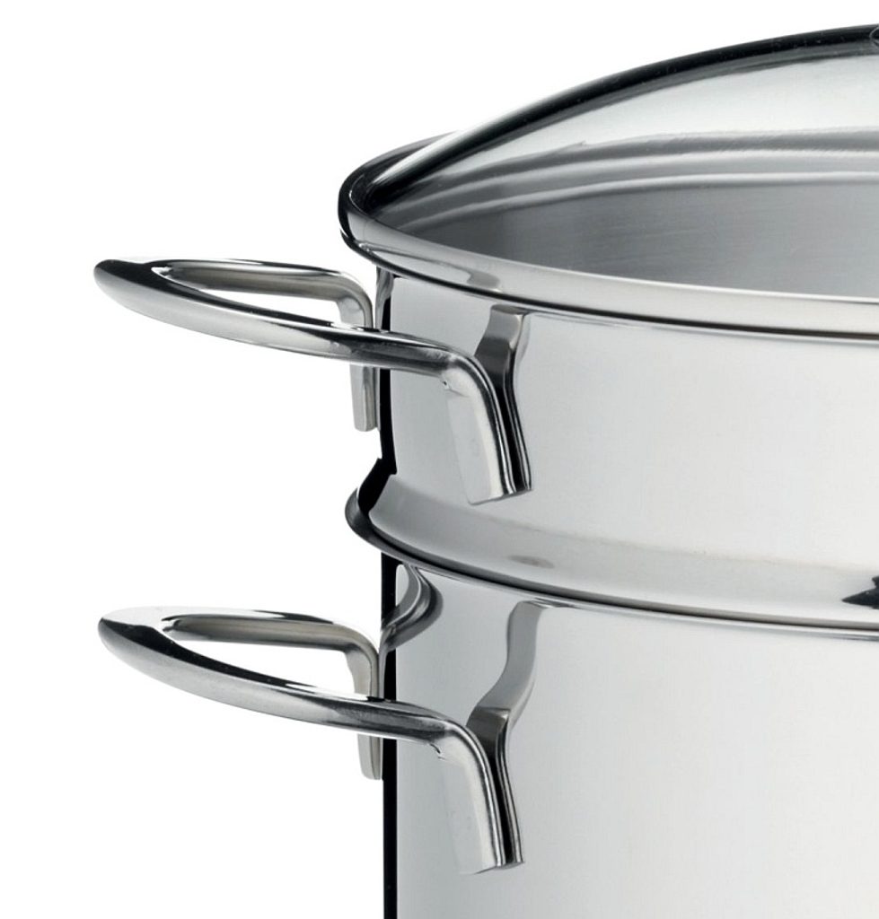 - složení: hrnec, napařovací vložka, skleněná poklice