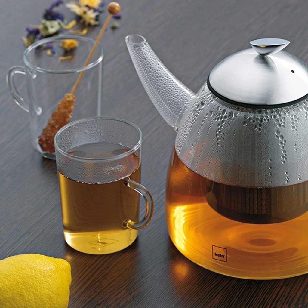 KELA Konvice na čaj 1,3 l AURORA KL-16940 Skleněná konvice AURORA od německé značky KELA je perfektní pro přípravu horkých nápojů. Díky louhovacímu sítku je ideální především na sypané, bylinkové, ovocné ale i sáčkové čaje. Designově dokonalá konvice je vyrobena v kombinaci borosilikátového skla a nerezové oceli. Žáruvzdorné sklo bez problému odolá vysokým teplotám a velmi dobře teplotu nápoje také udržuje. Bez problému můžete do konvice nalít právě uvařenou vodu. Víčko i sítko z nerez oceli ve vysoké kvalitě 18/10 zaručují dlouhou životnost. Sítko na louhování čaje je dostatečně dlouhé a široké, velmi snadno do něj vložíte i větší kusy zázvoru a bylinek. Poklička je opatřena silikonovým okrajem, který konvici dobře utěsní a čaj tak neztrácí teplotu. Disponuje dostatečně velkým objemem pro servírování několika šálků najednou. Konvička je přímo stvořena pro stylové servírování nápojů na stůl. Pokud je potřeba, je navíc vhodná k ohřevu na elektrické a sklokeramické plotýnce i v mikrovlnné troubě.- luxusní skleněná konvice na čaj AURORA- vhodná pro přímé servírování- materiál: nerezová ocel / žáruvzdorné sklo- moderní elegantní design- rychlé a snadné použití- prostorné louhovací sítko- perfektní pro přípravu bylinkových, ovocných a sypaných čajů- materiály odolné vůči poškrábání- borosilikátové sklo odolné proti působení chemikálií- snadno odnímatelné sítko a poklička- rodloužená nálevka podtrhuje design tradičních čajových konviček - vhodná k ohřevu na elektrické a sklokeramické plotýnce i v mikrovlnné troubě- rozměry konvice: průměr: 14,5 cm / výška: 15,5 cm- objem: 1,3 litru- barva: transparentní sklo / nerez / černá úchytka- značka: KELATIP: Konvice s louhovacím sítkem je vhodná pro přípravu nejrůznějších druhů sypaných, bylinkových i ovocných čajů. Pro Vaši inspiraci, nejoblíbenější jsou: z čerstvé máty, meduňky, heřmánku, mateřídoušky, zázvorový, z čerstvého citronu, ze sušených šípků a sušeného ovoce obecně. V sítku můžete klidně stvořit vlastní čajovou směs. Pokud máte oblíbený sáčkový čaj, můžete jej vložit přímo do sítka, vylouhuje se stejně dobře, jako jste zvyklí, pokud by se Vám však sáček nedopatřením roztrhl, sypký čaj zůstane zachycený v sítku a Vy si užijete jen čistý nápoj.