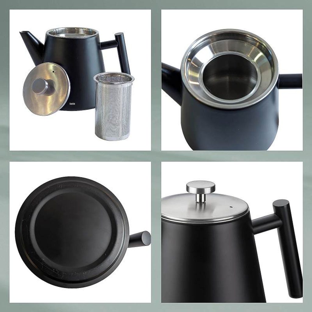 KELA Konvička Modena nerez 18/10 černá 15,0cm 11,5cm 1,0l KL-11357 - Servírovací konvice Modena- odnímatelné nerezové sítko pro sypané čaje- nerezová poklička- nerezová ocel 18/10- nelze použít na sporáku- barva: matná černá- rozměry: 11,5 cm x 15 cm- objem: 1L