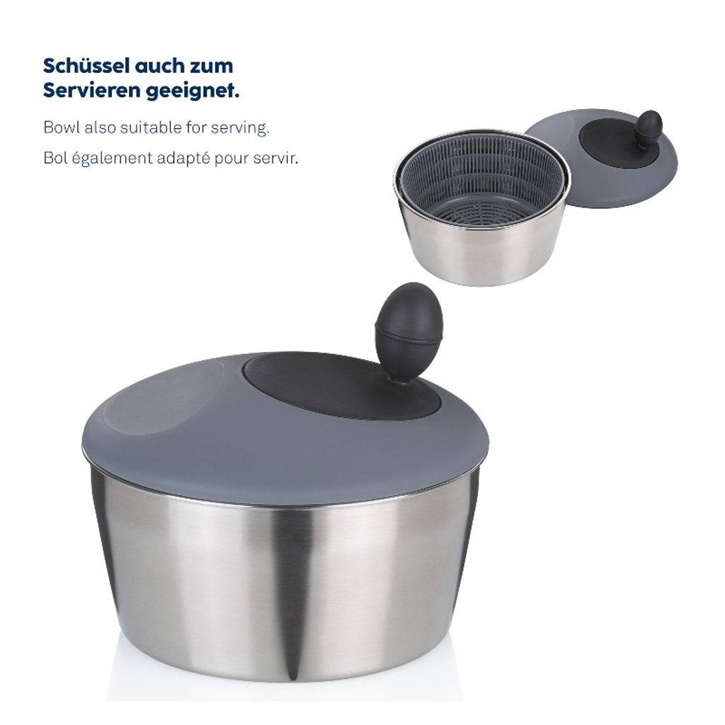 Ergonomicky tvarovaná rukojeť padne pohodlně do ruky a dělá točení vašich salátů dětskou hrou. Přebytečná voda je odstraněna rychle a efektivně, takže váš salát zůstane křupavý a svěží. Všechny vnitřní části lze snadno vyjmout a vyčistit bez námahy.