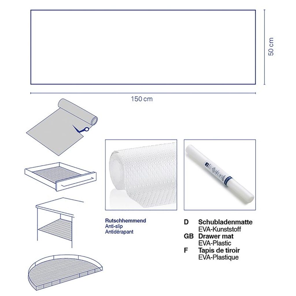 KELA Podložka do zásuvky Soletta plast tmavě šedá 150,0x50,0cm KL-11388
