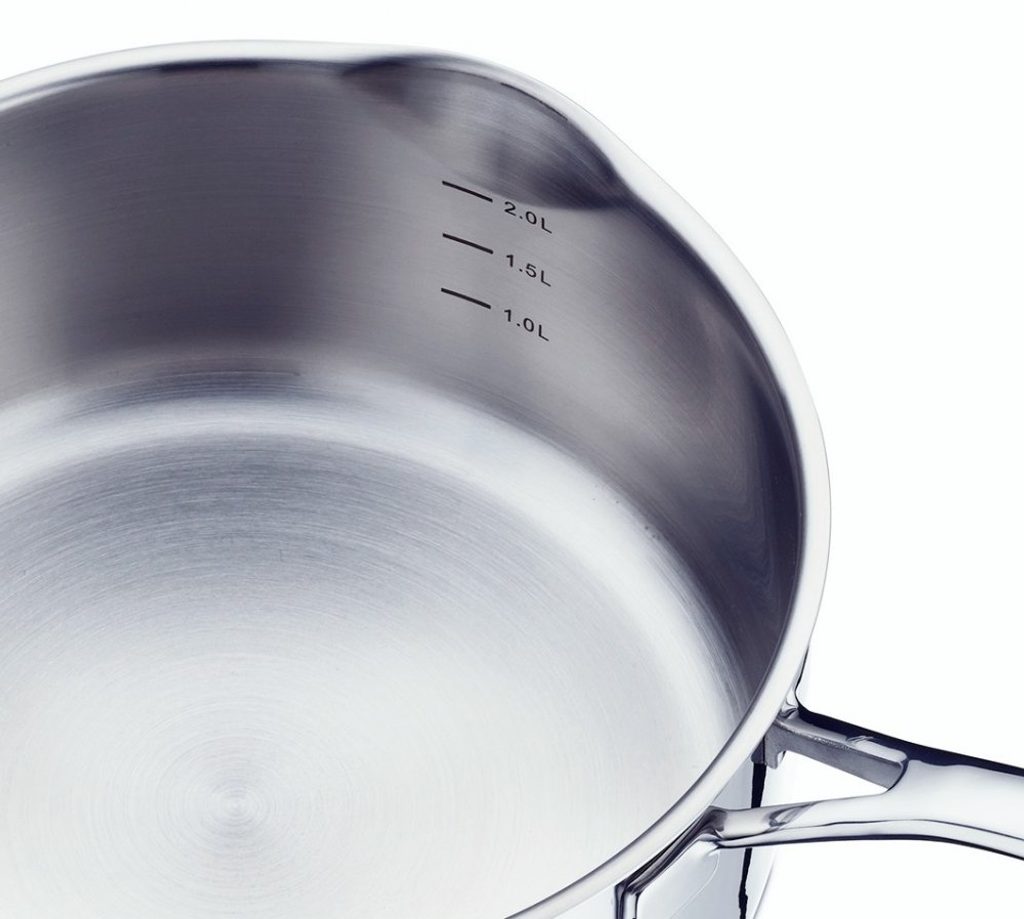 Sofistikované detaily, jako je ohnutý okraj, se postarají o snadnou manipulaci a o čistou práci při odlévání, zatímco vnitřní stupnice zjednoduší měření - absolutně bez dalšího příslušenství. Speciálně tvarované rukojeti se zredukovaným průřezem garantují zároveň příjemnou teplotu při držení.