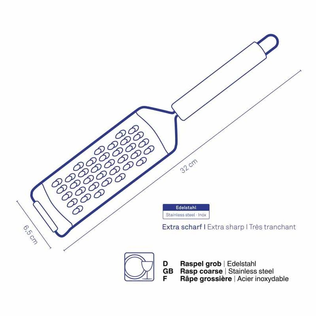 KELA Struhadlo hrubé Rondo nerez 6 mm KL-12574 Hrubá rašple Rondo z nerezové oceli: tato rašple z řady kuchyňských vychytávek Rondo se hodí například na strouhání zeleniny. Kompaktní tvar s konkávním povrchem mřížky usnadňuje rašplování. Rašple je vyrobena z nerezové oceli, je 6,5 cm široká a 32 cm dlouhá. 6mm, nerez, 32x6,5cm