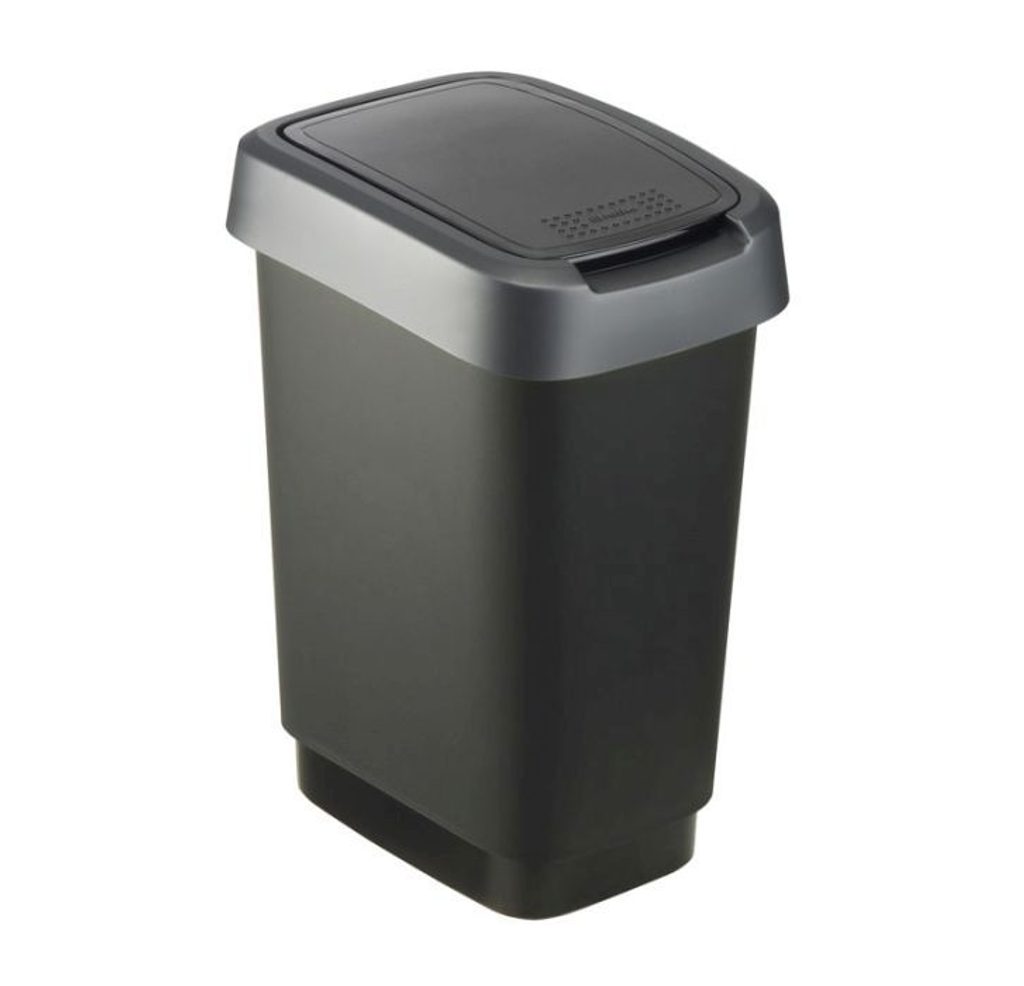 koš odp.10l TWIST, černý/stříbr.,výklop., plast
