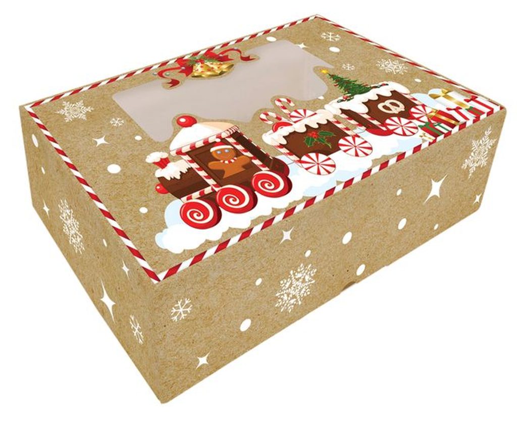 Krabička disponuje průhledným okénkem pro atraktivní prezentaci vašich vánočních cukroví, pralinek, cupcaků, donutů nebo kosmetických a keramických dárků.
