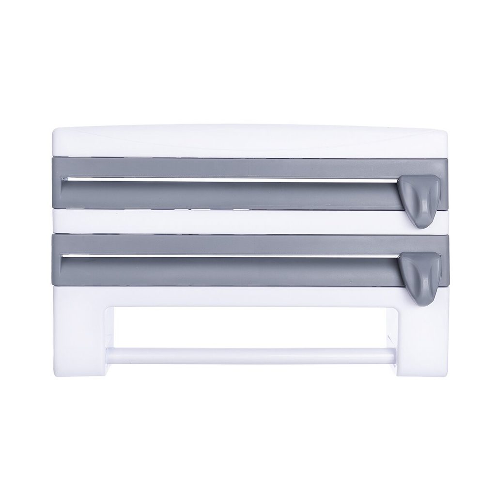 Zásobník do kuchyně na potravinovou fólii, alobal a papírové utěrky zajistí, že budete mít tyto pomocníky vždy při ruce. Do horní přihrádky můžete umístit pečící papír, kořenky, odložit kuchyňskou minutku… Fólii a alobal pohodlně odříznete. Pro fólii je určen kovový nůž, fólie musí být při řezání napnutá. Pro alobal je určen plastový nůž. Materiál: plast, kov. Rozměry: 38x8x25 cm. Lze připevnit buď na šroubky nebo nalepit na odmaštěný hladký povrch - montážní materiál součástí.