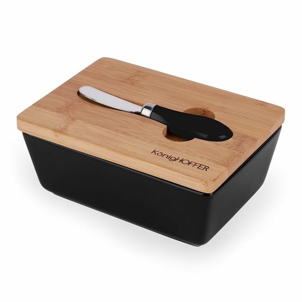 máslenka 17x12x7cm černá+nožík, keramika/bambus *PO 15.6,