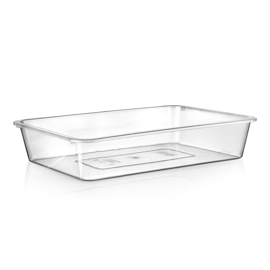 Miska obdélník čirá. Materiál: plast. Rozměry: 30x21x6 cm, objem 3 l.