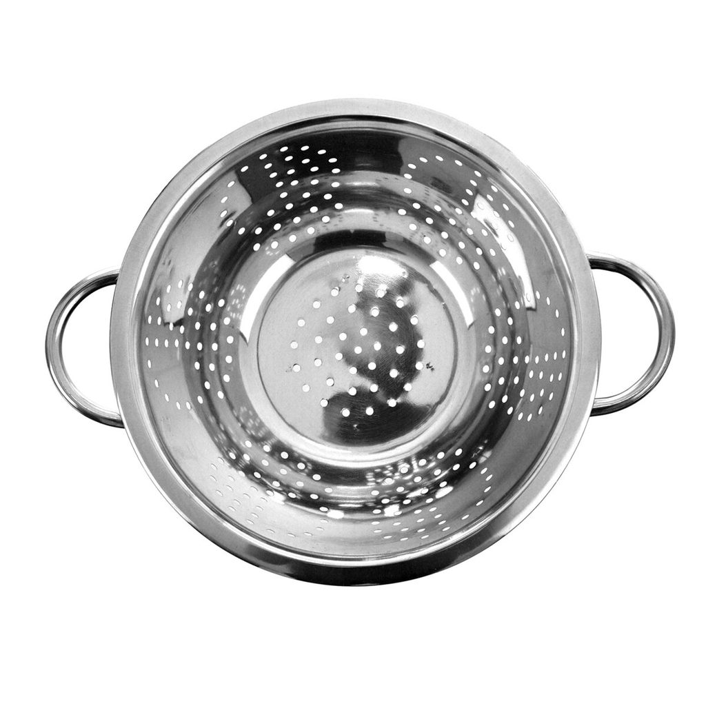 Cedník nerezový - mísa, vhodný jak pro cezení, tak pro následné servírování. Šířku uvádíme včetně obou úchytů.Rozměry: pr. 24 cm, š. 31 cm, v. 11 cm.