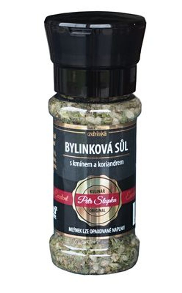 rozměry: průměr 4,9cm; výška 12,2cm mlýnek koření-"K"-BYLINKOVÁ SŮL-70g QQ