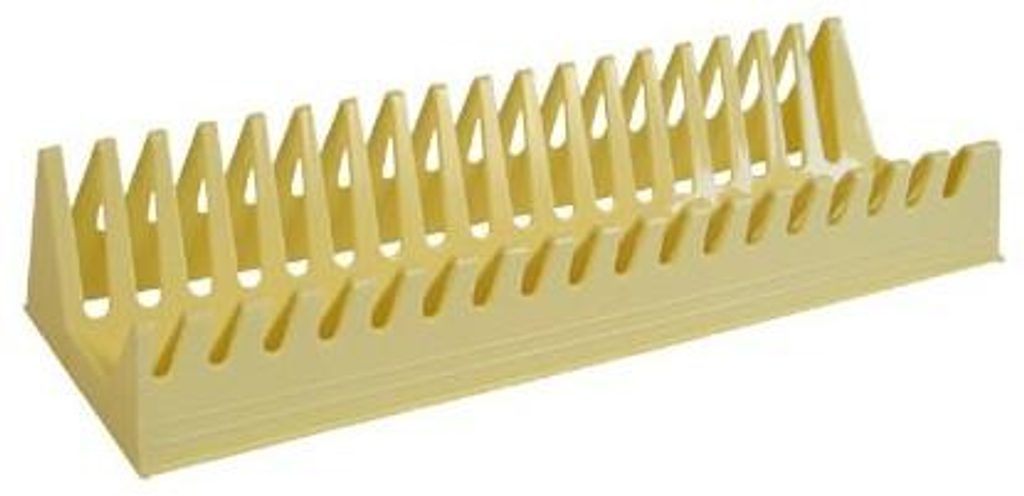Plastový stojan na talíře 089. Je vhodný k odkapávání umytých talířů.37 cm, výška 7 cm. Mix barev. Stojan na talíře 089