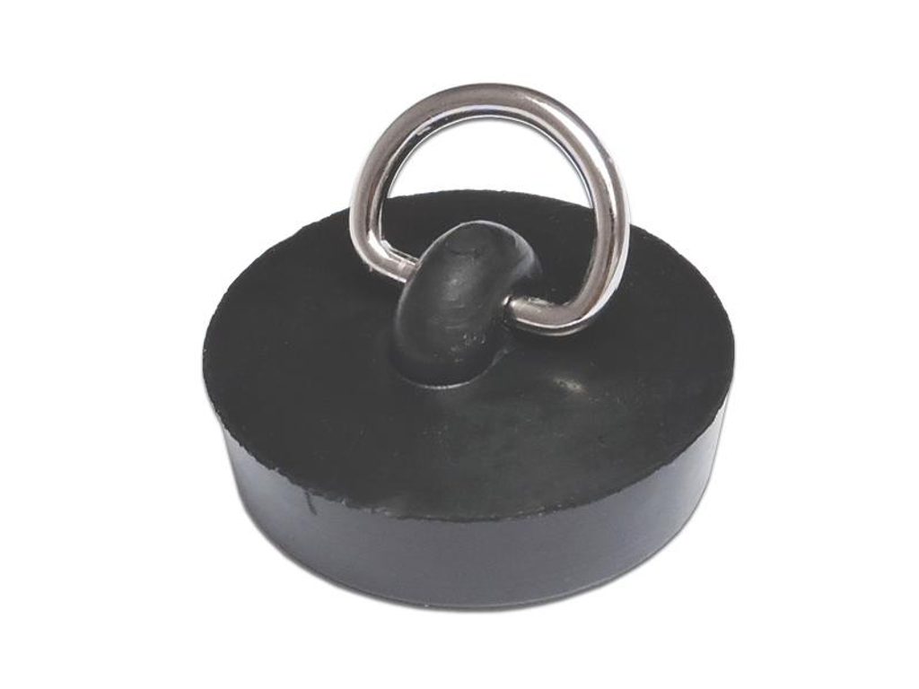 Gumová zátka v černé barvě s kovovým očkem. Tento tvar je ideální pro snazší manipulaci při přetlaku vody. Zátka je vhodná především k uzavření odtoku u umyvadel, koupacích van a dřezů. Průměr - 39 mm.