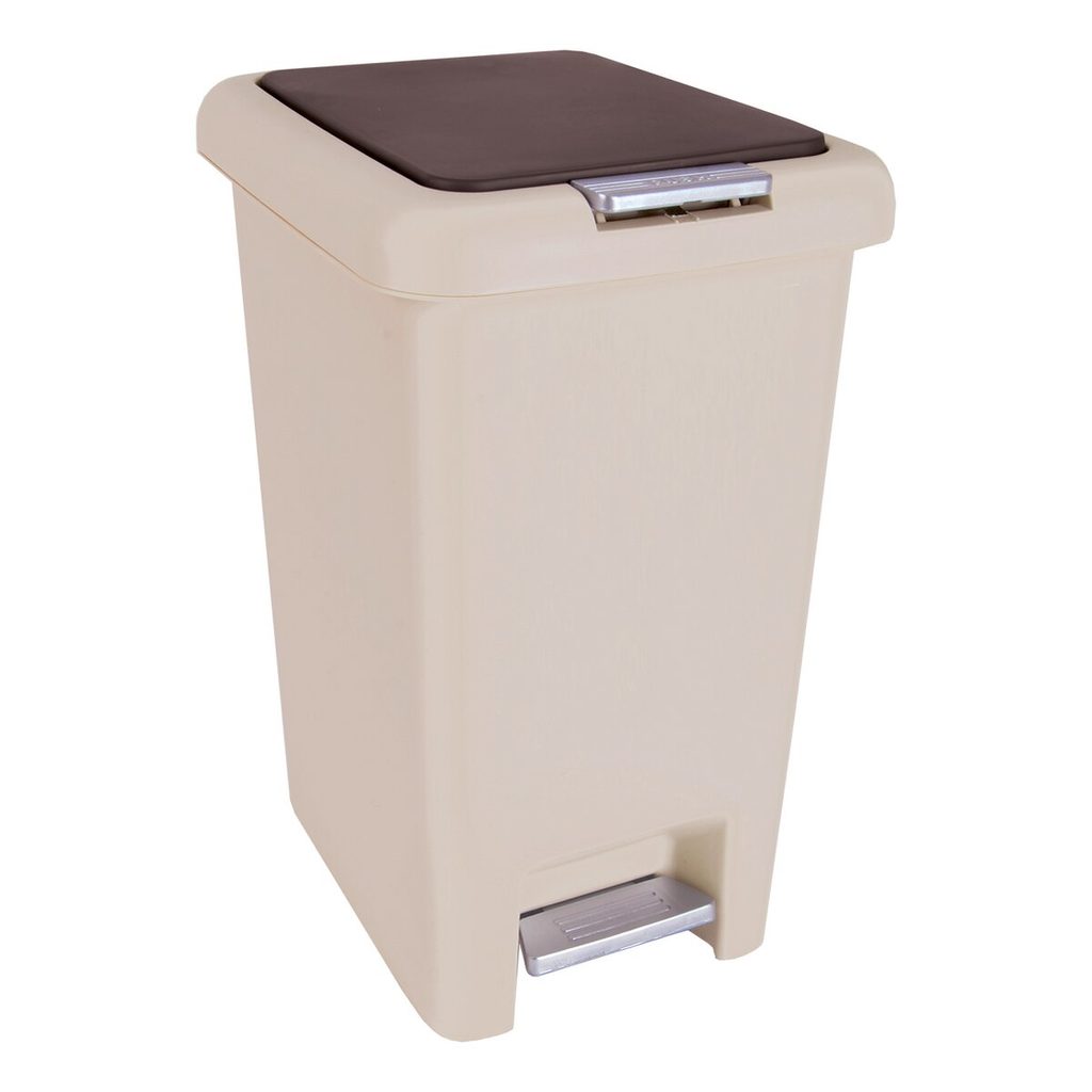 Koš odpadkový nášlapný/na klip - sami si vyberete, zda Vám vyhovuje nášlapný systém otvírání nebo raději zvolíte klip, který Vám pomocí pružiny otevře víko koše. Materiál: plast. Barva béžová. Rozměry: 39x29x49 cm, objem 30 l.
