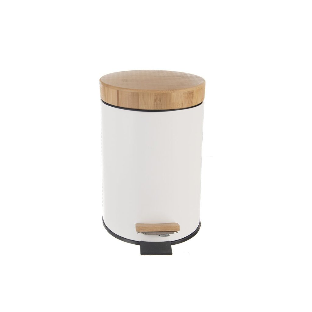 Odpadkový koš moderního vzhledu s pedálovým otvíráním, vyjímatelným plastovým košem a uchem pro snadné přenášení. Zavírání má tichý a měkký dojezd. Materiál: kov, plast, bambus. Válcový tvar. Rozměry: pr. 17 cm, v. 25 cm, objem 3 l.