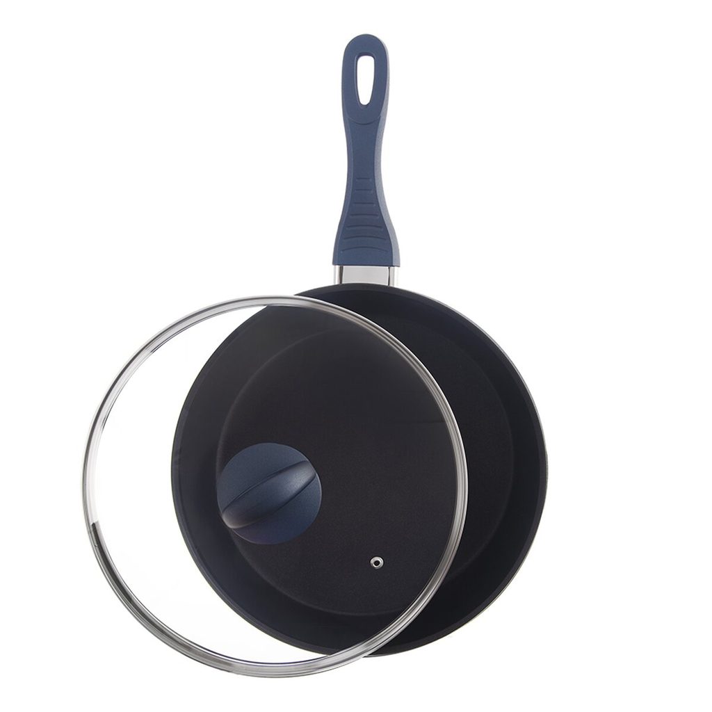 Pánev s poklicí Diamant překvapí svými jedinečnými užitnými vlastnostmi. Vnitřní nepřilnavý povrch diamantového vzhledu vyniká skvělou tepelnou vodivostí a varnými vlastnostmi. Materiál: vysoce kvalitní slitina hliníku s prvotřídním nepřilnavým povrchem, plast, kov, sklo. Nepřilnavý povrch s minimálním třecím odporem umožňuje přípravu zdravých a chutných pokrmů s minimem přidaných tuků, bez zásadních výživových ztrát. Lze použít jak k opékání, restování, pošírování, redukci šťáv, omáček. Příprava a následně konzumace jídla se tak stane skutečným požitkem. Použitím revoluční výrobní technologie a zvolenými materiály nedochází k uvolňování nebezpečných látek (PFOA FREE), snižují se tak škodlivé dopady na zdraví i životní prostředí. Dokonalá vodivost eliminuje ztrátu tepelné energie, dochází takék úspoře času. Konstrukce pánve je postavena tak, aby nedocházelo ke vzniku horkých míst, ale teplo bylo rovnoměrně rozvedeno do celého korpusu a následně k připravovanému pokrmu. Pánev lze používat na všechny typy spotřebičů, je vhodná i do myčky nádobí. Poklice s otvorem pro únik páry. Rozměry: pr. 28 cm, v. 6,5/13 cm.