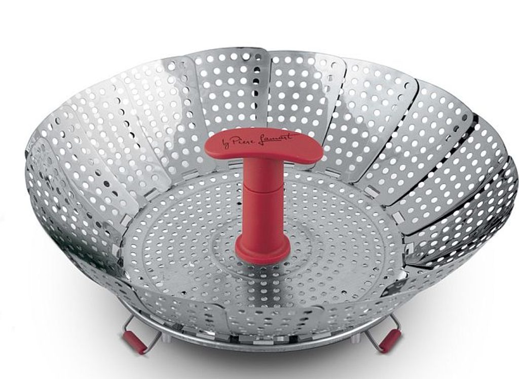 Pařáček skládací, nerezový je vhodný k napařování knedlíků, vaření zeleniny a jiných pokrmů v páře - zachovává minerály a vitamíny. Lze použít do hrnců různých průměrů. Průměr: 14/22 cm.…
