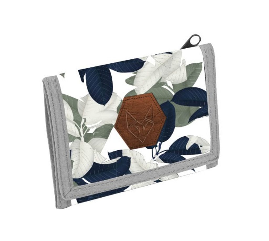 Praktická textilní peněženka na suchý zip. Vzadu je uzavíratelná kapsička na drobné, uvnitř jedna přihrádka na bankovky, šest kapsiček na karty a jedna průhledná kapsa.