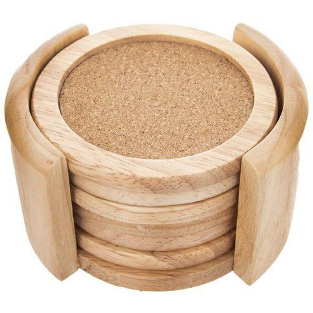 podtácek d9,5cm, 4ks, stojan, gumov.dřevo/korek
