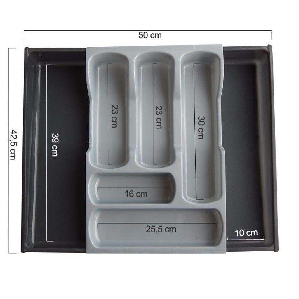 příborník 42x30x6,4cm, šedý/černý, nastav. 5přihr.,plast