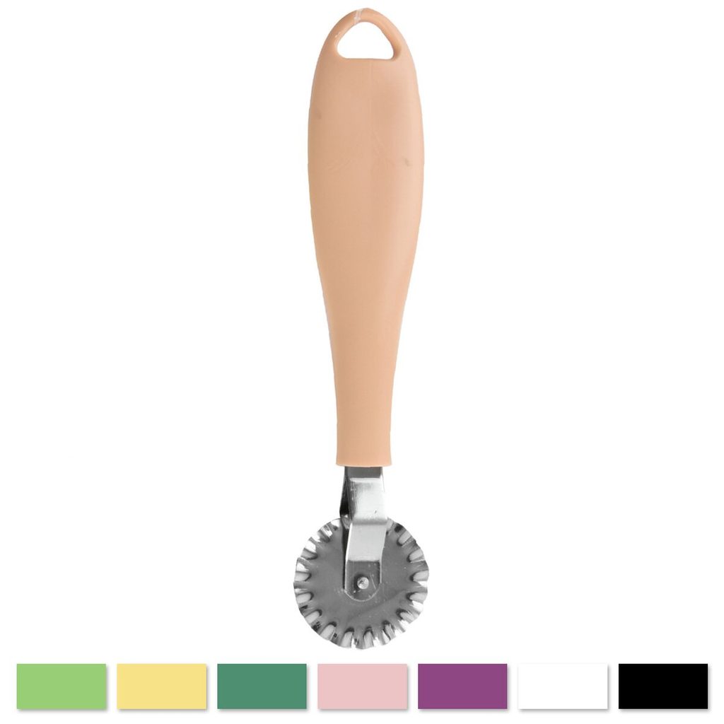 Rádýlko na těsto se zoubkovaným břitem na přípravu knedlíků, buchet a slaného pečiva. Materiál: kov, plast. Rozměry: délka 16 cm, pr. 3 cm.