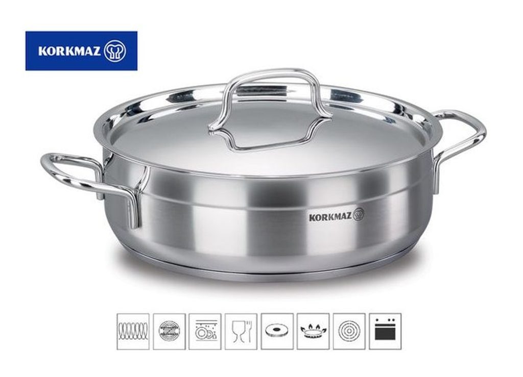 Trojvrstvé dno o tloušťce 5 - 6mm je naprosto ideální pro indukční desku nebo jakoukoliv troubu. Součástí nerezového kastrolu Alfa je také praktická poklice s madlem, která je vyrobena ze stejného materiálu. rendlík 28+PO ALFA, 5,5l, v. 9cm, indukce, NR