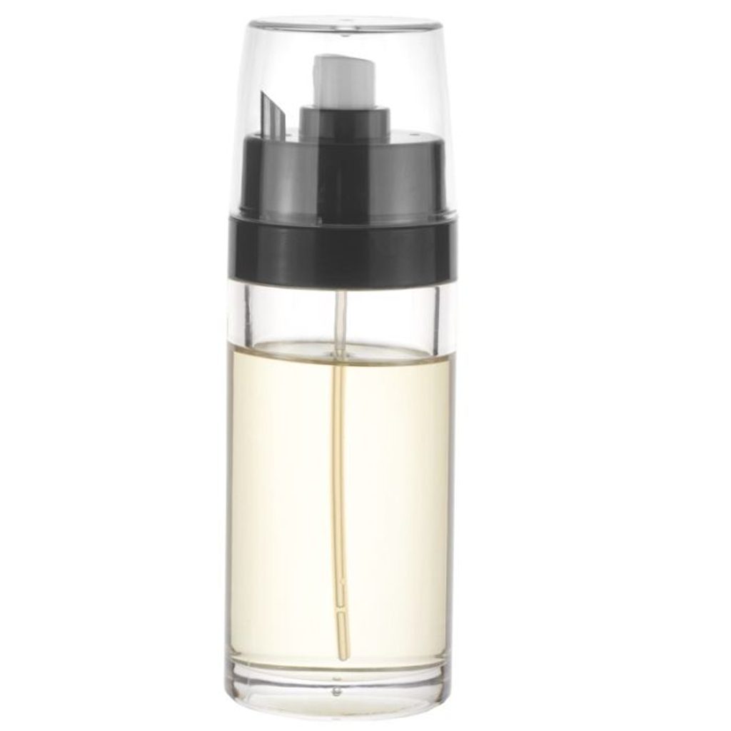 Transparentní rozprašovač z odolného plastu o objemu 0,15 l s plastovým víčkem určený na olej či ocet. Pootočením víčka uvolníte výlevku, umožňující klasické dávkování tekutiny. Tento mechanický rozprašovač se výborně hodí k dochucování salátu, přípravě zeleninových jídel i nakládání masa na grilování. Ať už do něho nalijete olej nebo ocet, danou tekutinu rovnoměrně a přesně rozpráší tam, kde ji zrovna potřebujete. rozprašovač 0,15l oleje, s výlevkou d5,5x16,5cm, 2v1