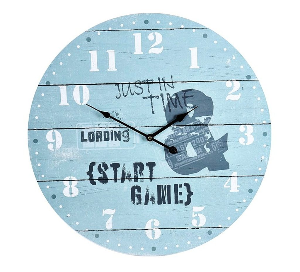 Hodiny nástěnné dřevěné 55 cm světle modrá