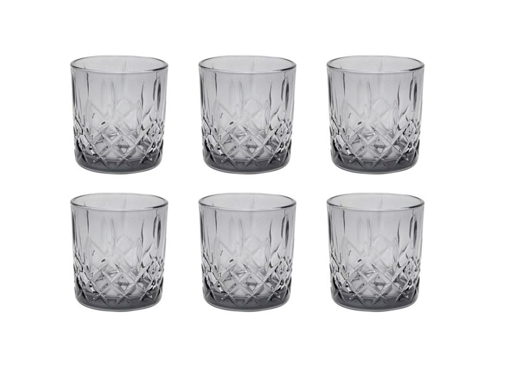sklen. 340ml, 6ks, d8x8,5cm, kouř., whisky