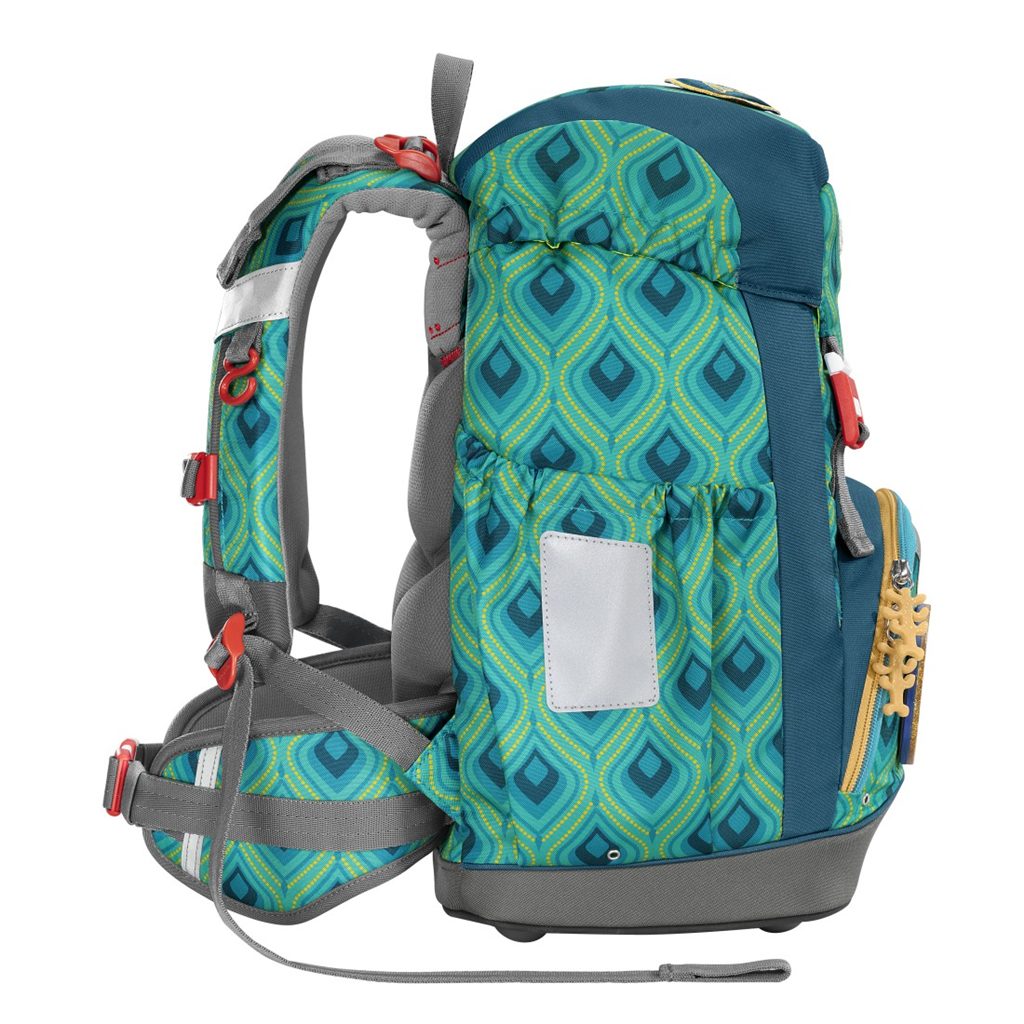 - boční kapsy na láhev s pitím s otvorem v dolní části kapsy. Pokud do kapsy vyteče lahev, tekutina odteče otvorem dříve než se vsákne do hlavní kapsy a poničí učební pomůcky