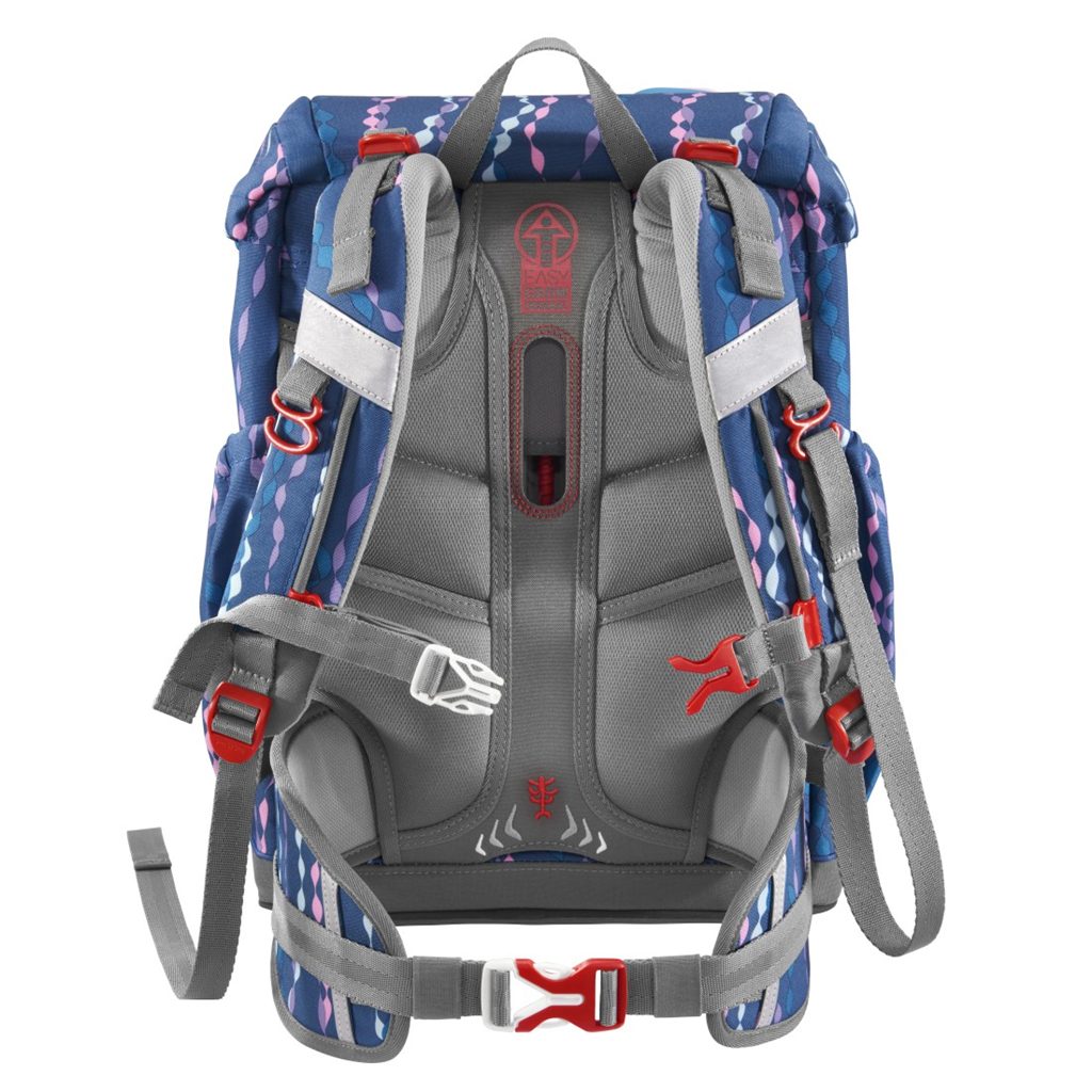 - pomocí otočného mechanismu uvnitř aktovky, zajišťujete přesné nastavení ramenních popruhů přímo na zádech dítěte od 1. Do 4. třídy