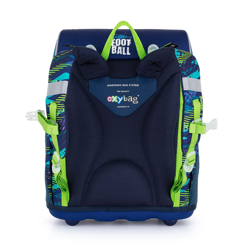 Školní aktovka z řady Premium s motivem fotbalu je anatomicky tvarovaná a zajišťuje tak správné usazení na zádech. Vyztužená záda a vnitřní výztuha udržují stálý tvar batohu. Polstrování je z příjemného prodyšného materiálu, široké měkčené popruhy jsou navrženy tak, aby dokonale přilnuly a rovnoměrně zatížily ramena dítěte. Aktovka se skládá z jedné prostorné komory, kam se pohodlně vejdou všechny školní pomůcky pro děti v 1. a ve 2. třídě. Dno batohu je z pevného materiálu, chrání tím obsah před převržením a vysypáním. Zapínání je na bezpečnostní přezku. Přední kapsička je určena na svačinu, nechybí řada reflexních prvků, díky kterým je aktovka viditelnější.