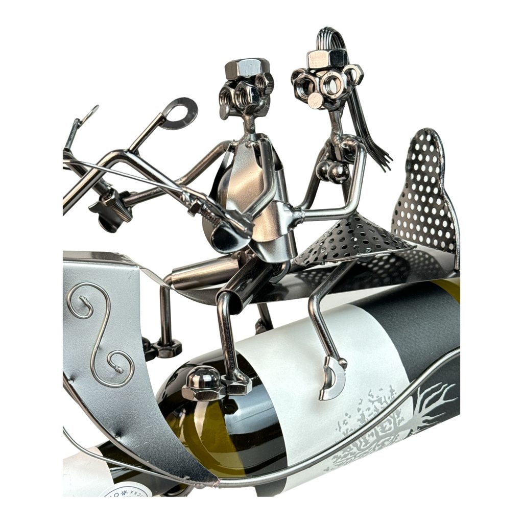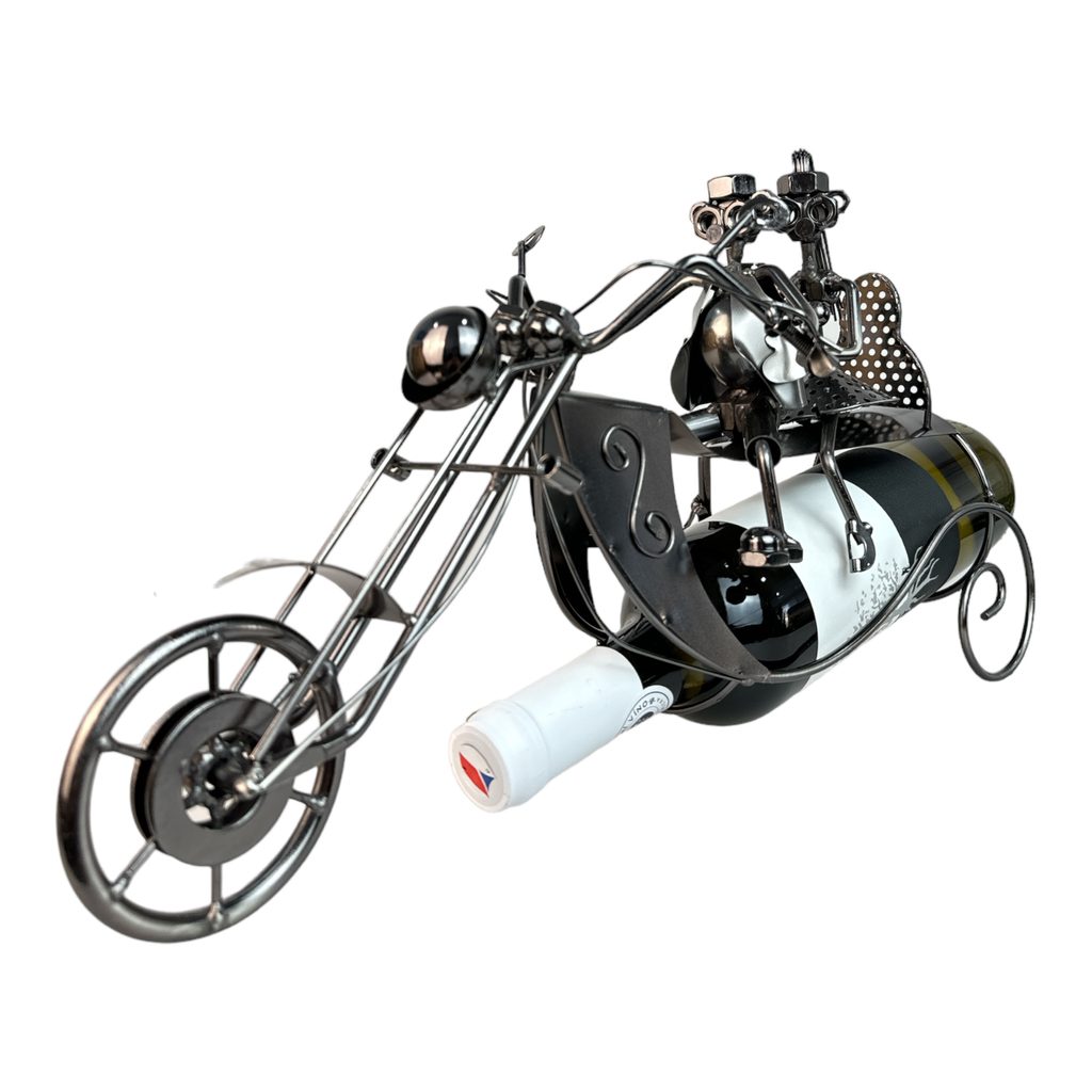 Dárkový stojan na víno kovový v provedení páru na motorce. Vhodný dárek pro motorkáře.