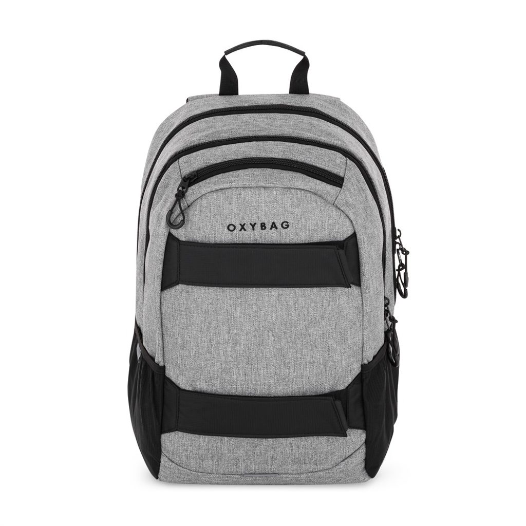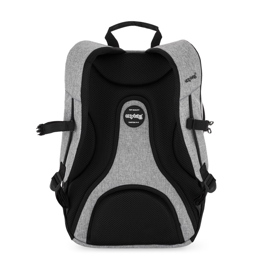 Batoh: Studentský i volnočasový školní batoh řady OXY SPORT vyniká ergonomicky tvarovanými zády, nastavitelnými polstrovanými ramenními popruhy a hrudním popruhem, díky kterým se pohodlně nosí. Batoh se skládá ze dvou hlavních komor a jedné menší přední kapsičky opatřenými pevnými zipy a praktickými poutky. Uvnitř batohu je vyztužená kapsa na notebook do 15'', karabina na klíče, menší kapsa na drobnosti a skrytá kapsa na zádech. Nechybí také boční kapsa na lahev na pití a řada reflexních prvků, díky kterým je batoh lépe viditelný. Batoh je ideální jak do školy pro školáky na druhém stupni tak i pro volnočasové aktivity studentů a dospělých.