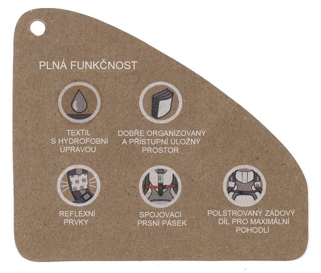 Studentský batoh WALKER FAME je dvoukomorový batoh s velkou přední kapsou uzavíranou na zip. Zadní komora má v horní části kapsičku na zip, na zadní části velkou otevřenou kapsu a vnitřní část je členěna zdvojenou přepážku, která tento prostor člení na tři samostatné části. Druhá komora je jednoduchá bez vnitřního členění. Přední velká kapsa má organizér navitý na kapse na zadní části. Organizér tvoří kapsička na mobil, síťovaná kapsička na zip a přihrádky na psací potřeby. V dolní části kapsy je reflexní paspule pro lepší viditelnost při špatných světelných podmínkách. Zádová část má ergonomické síťované polstrování. Široké nosné řemeny jsou opatřeny výškově nastavitelným spojovacím prsním páskem a reflexním páskem. V horní části je široké pevné madlo a vzadu pod ním poutko na pověšení. Po obou stranách jsou zdvojené kapsy s reflexní paspulí. Vnější menší kapsa je uzavíraná na zip, vnitřní větší je otevřená.