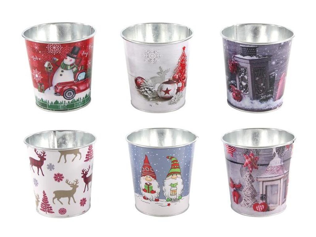 NÁDOBA PLECHOVÁ ?10x10CM VANOČNÍ MOTIV