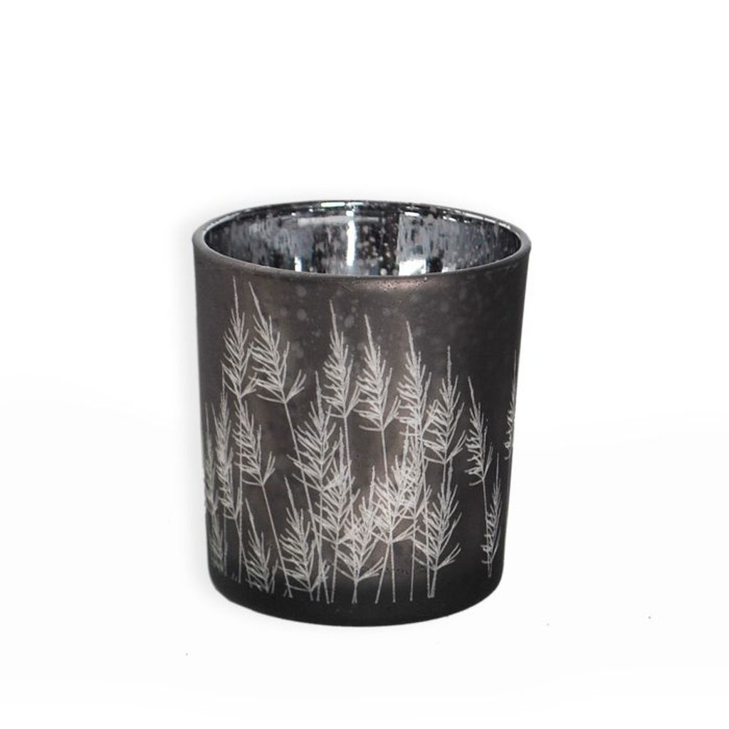 svícen d7,3cm,v.8cm, antracit mat/stříb., sklo