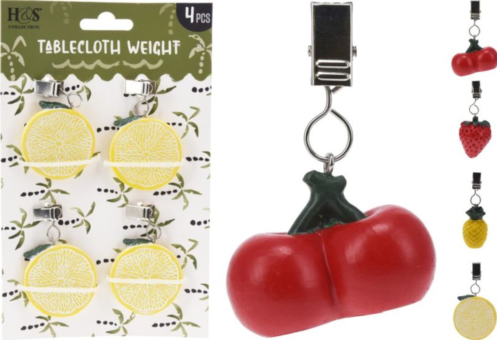 těžítko-závaží 4ks na ubrus, OVOCE, s klipsem
