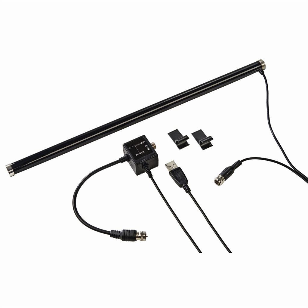 - pokojová anténa pro příjem digitálního televizního (DVB-T/T2) i rozhlasového (DAB/DAB+) vysílání