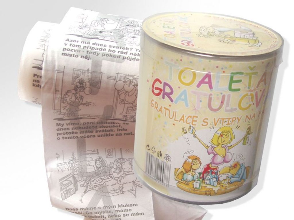 Toaletní papír je dvouvrstvý, dlouhý 20 m. Nesmí chybět na žádné narozeninové oslavě.
