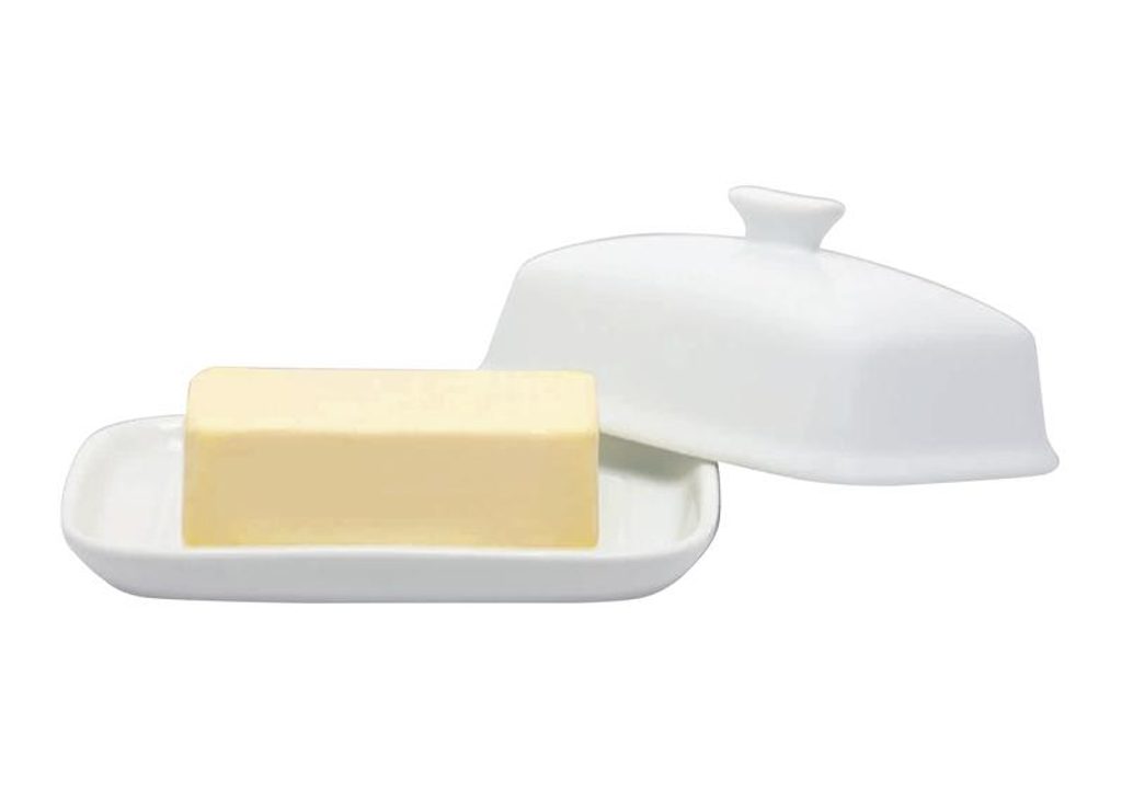 Dóza na máslo k uchování másla v hygienickém prostředí v lednici. Porcelán je zdravotně nezávadný a snadno omyvatelný, vhodný i do myčky na nádobí. Barva bílá. Rozměry - 18 x 13,5 x 7 cm.