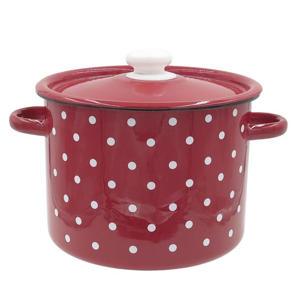 Smalt se používá v kuchyni již řadu let. Smaltový hrnec je výborným pomocníkem k přípravě veškerých pokrmů, ale můžete ho použít jako dekorativní prvek, který vnese do každého domu či chalupy kus veselé nálady. Je vhodný na všechny druhy sporáků, včetně indukce. Hrnec má 2 praktická ucha pro snadnou manipulaci. Tento smaltovaný hrnec nabízíme v červěné barvě s bílým puntíkem o objemu 5,5 l.