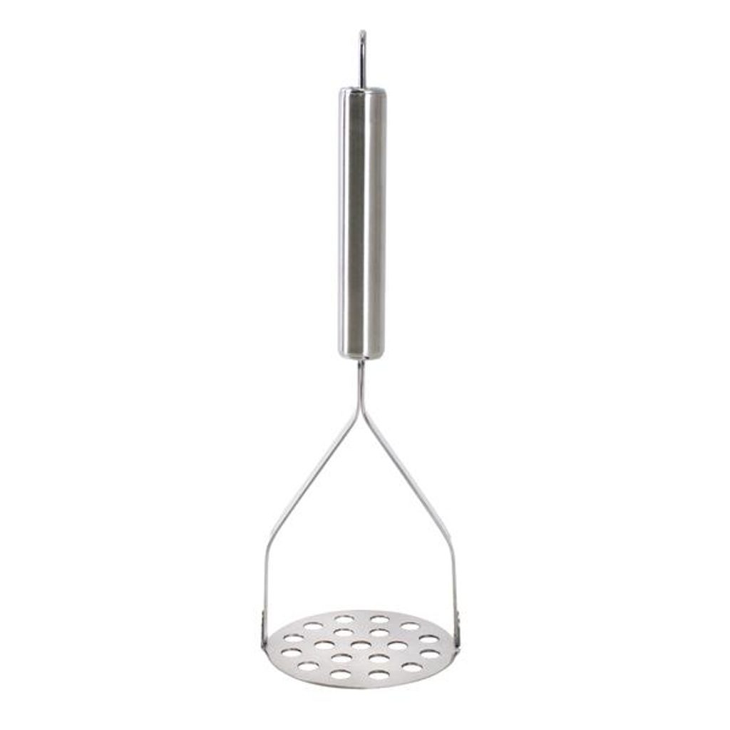 Mačkadlo na brambory, lesklá nerez ocel 18/8, rukojeť matná, s otvorem pro zavěšení, určené pro mačkání vařených brambor, vhodné do myčky na nádobí. Barva stříbrná. MAČKADLO NA BRAMBORY, NEREZ