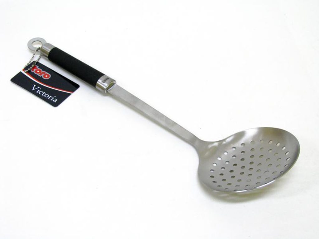 Lžíce na salát je klasikou mezi kuchyňským náčiním, která se používá na přípravu salátu. Tento výrobek je snadno omyvatelný a vhodný do myčky na nádobí. Nerezová rukojeť je uzpůsobena pro zavěšení na závěsnou tyč. Řada - Victoria. Rozměry - 38 x 11 cm.