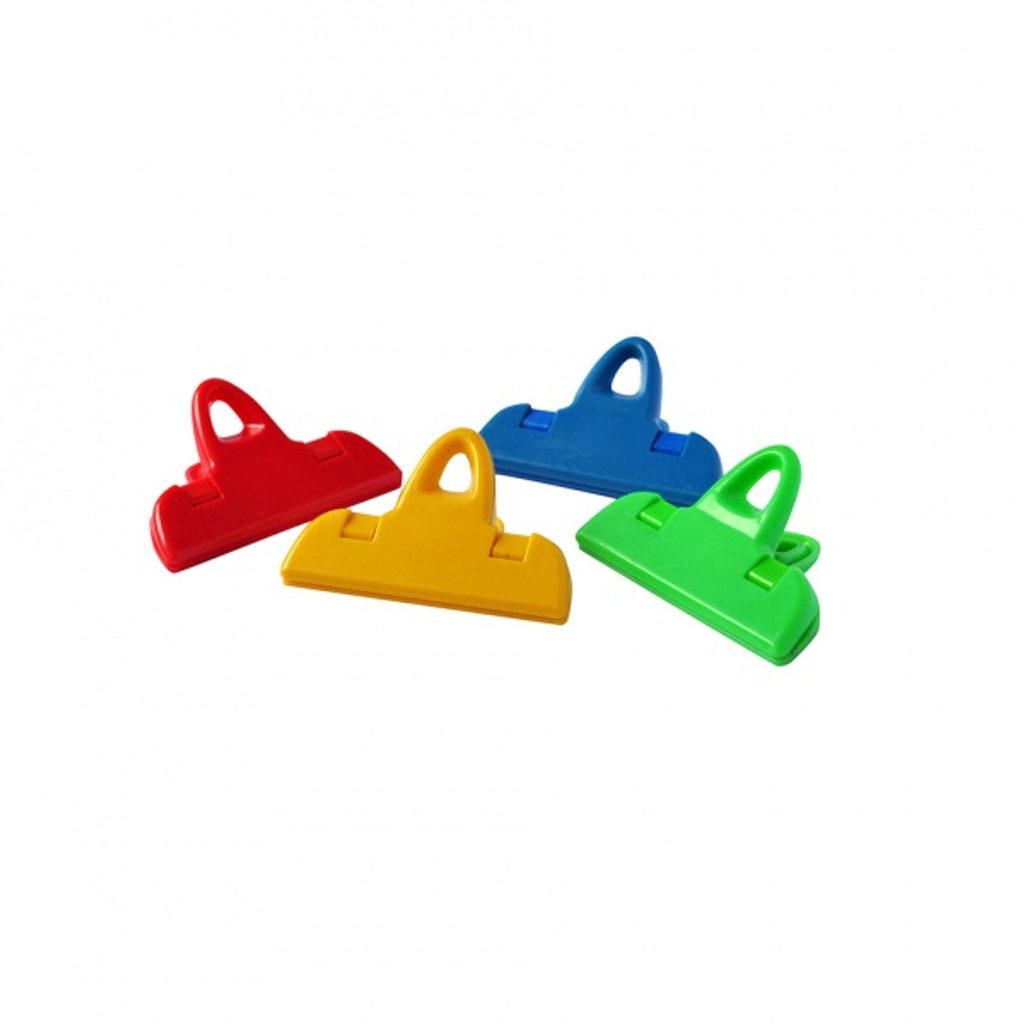 Sada klipů na uzavírání již otevřených pytlíků s těstovinami, s kořením a dalšími potravinami. Sada obsahuje 4 ks. Assort barev. Šířka 6,6 cm.