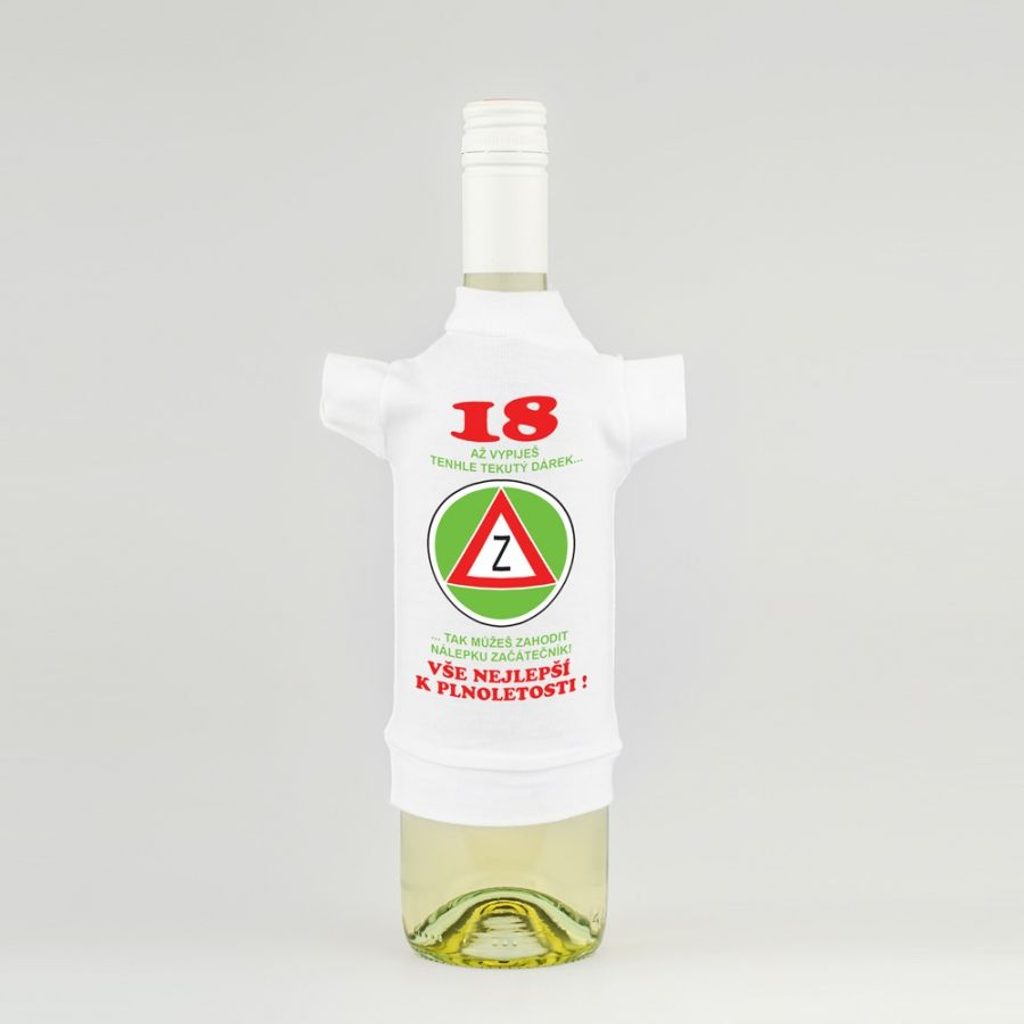 Tričko na láhev pro oslavence dospělosti, velkých 18 let. Dárek, který udělá radost každému oslavenci. Tričko poté zůstane obdarovanému jako památka.