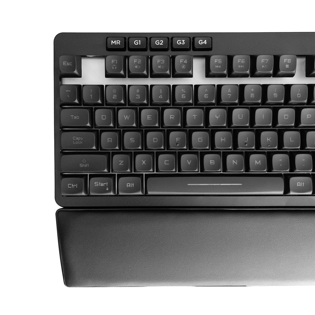 - herní klávesnice s transparentním podsvíceným povrchem a polstrovanou podložkou pod zápěstí