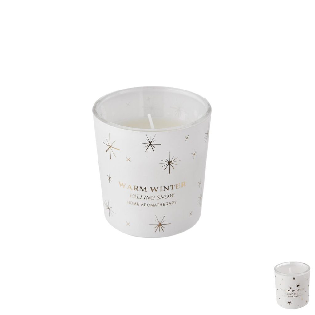 Vonná svíčka ve skleničce se zimním dekorem provoní vaši domácnost.
